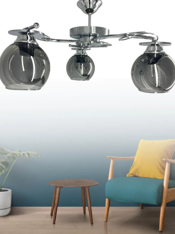 İlay Krom 3'lü Füme Camlı Avize