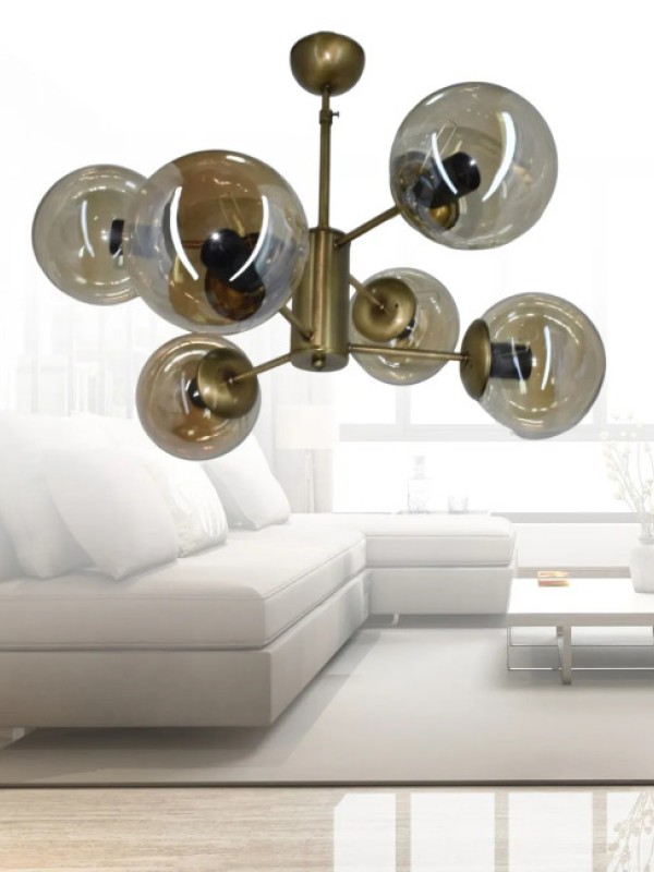 Rima Eskitme 6'lı Bal Camlı Avize, eskitme metal ve bal rengi cam tasarımıyla vintage bir şıklık sunar. Evinize sıcak ve zarif bir dokunuş katmak için ideal bir aydınlatma çözümü.