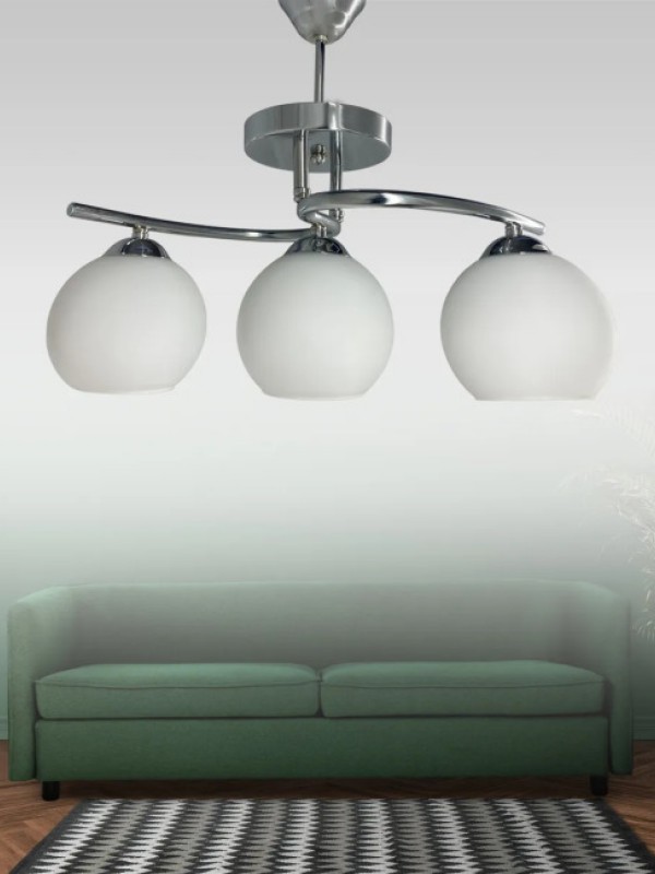 Fuji Krom 3'lü Beyaz Camlı Avize