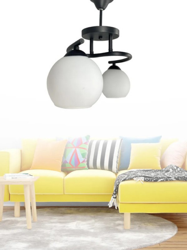 Fuji Siyah 2'li Beyaz Camlı Avize