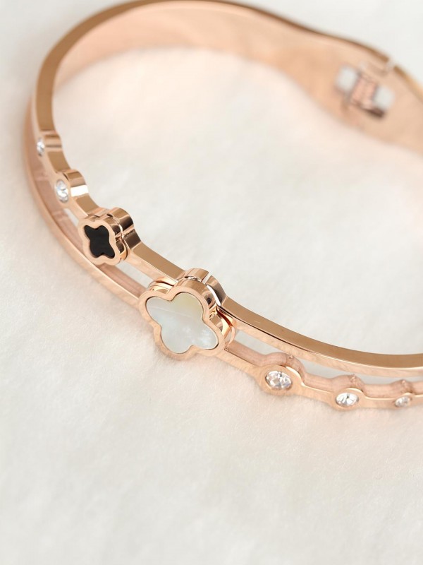 Rose renk kaplama Taşlı Çelik Bayan Kelepçe Bileklik