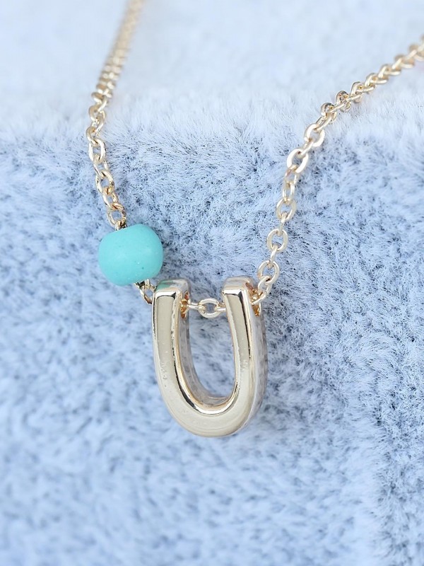 Gold Renk Boncuklu Bayan U Harfli Kolye