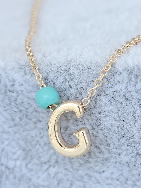 Gold Renk Boncuklu Bayan G Harfli Kolye