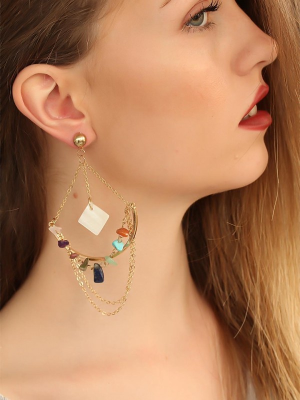 Otantik şıklığı Eskitme Renk Taşlı Bayan Sallantı Küpe ile kolayca yakalayın.