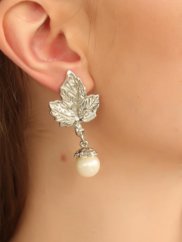 Otantik tasarımı ile dikkat çeken Yaprak Tasarım İncili Gümüş Renk Bayan Küpe modeline bayılacaksınız.