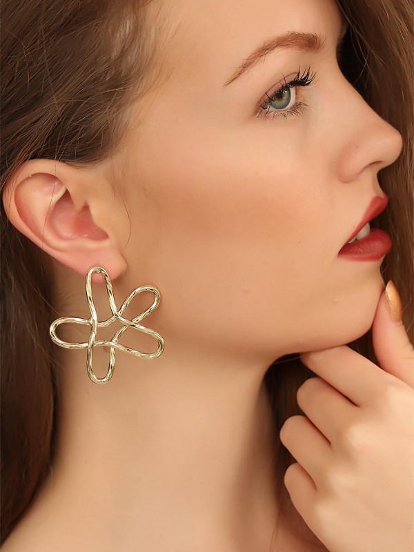Kombin şıklığını Gold Renk Metal Çiçek Bayan Küpe ile yakalayın.