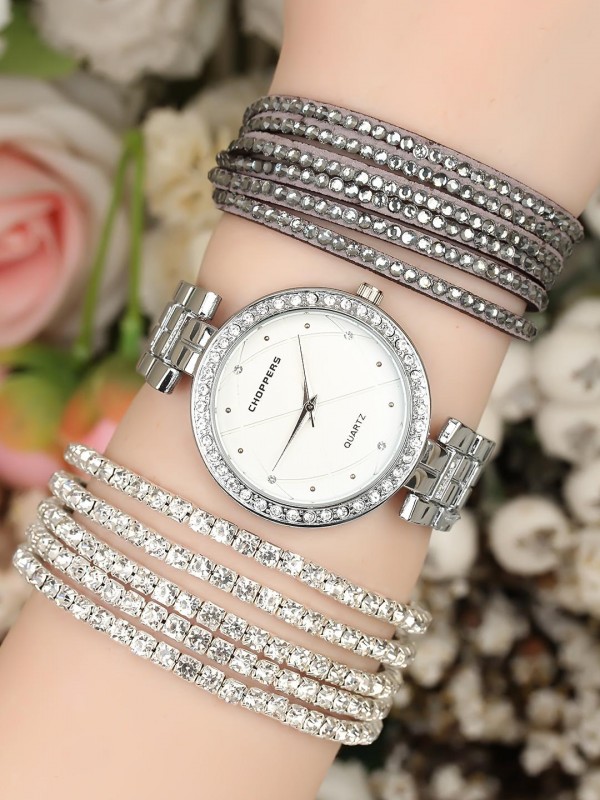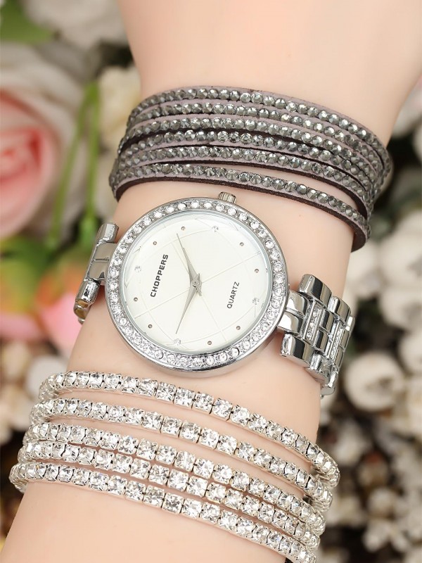 Zirkon taşlı ve çoklu bileklik tasarımlı silver renk Metal Kordonlu Clariss Marka Bayan Saat Kombini -Saatin yanında kaç adet bileklik varsa saat ile birlikte hepsi geliyor (hepsi fiyata dahil.)
