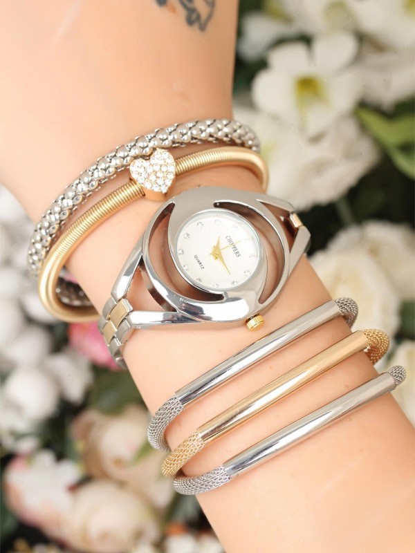 Kalpli tasarımı ile romantik şıklığa imza atan Rose Silver Renk Metal Kordonlu Trend Kasa Bayan Saat ve Bileklik Kombini ile tarzınızı güncelleyin.