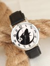 Siyah Deri Kordonlu Silver Renk Metal Kasa Bozkurtlu Erkek Saat