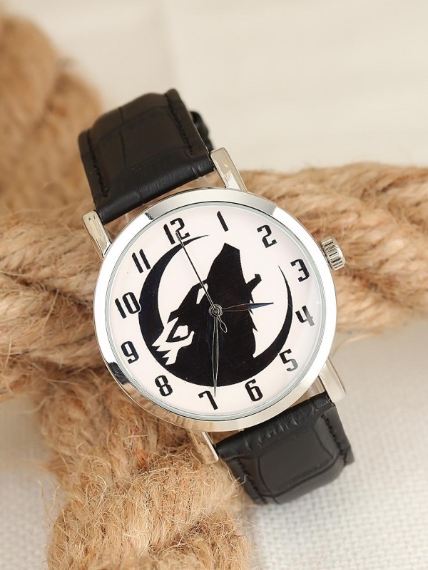 Kombinlerinizi Siyah Deri Kordonlu Silver Renk Metal Kasa Bozkurtlu Erkek Saat ile detaylandırın.