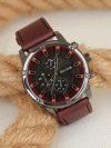 Yeni sezona Bordo Deri Kordonlu Füme Metal Spor Kasa Erkek Kol Saati ile damga vurun.