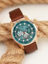 Trend tasarımlı Kahverengi Deri Kordonlu Rose Metal Spor Kasa Erkek Kol Saatine sahip olun.