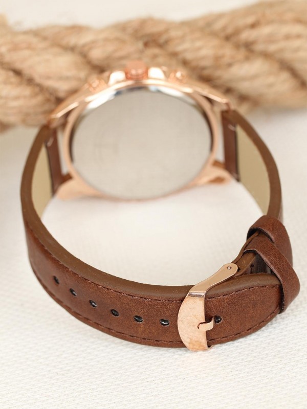 Kahverengi Deri Kordonlu Rose Metal Spor Kasa Erkek Kol Saati