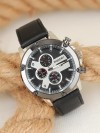 Sezona Siyah Deri Kordonlu Füme Spor Metal Kasa Erkek Kol Saati ile giriş yapın.