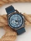 Lacivert Renk Deri Kordonlu Füme Metal Spor Kasa Erkek Kol Saati