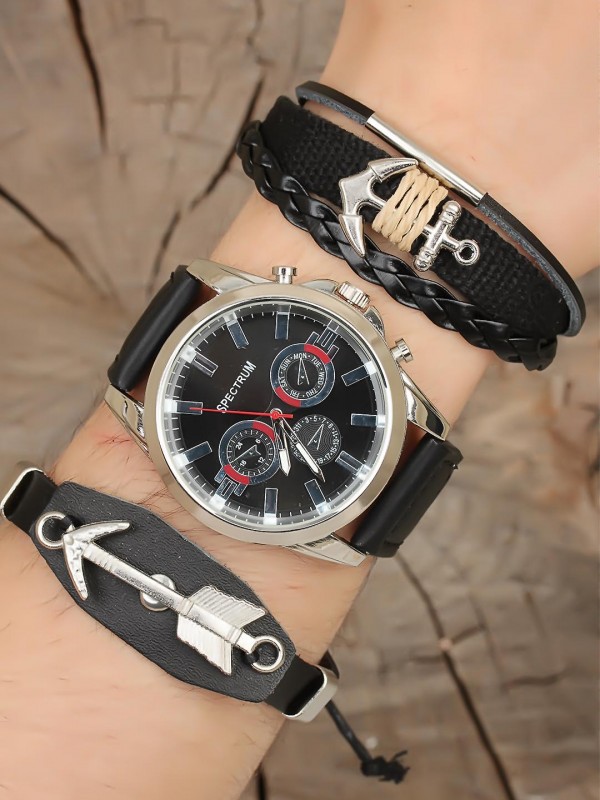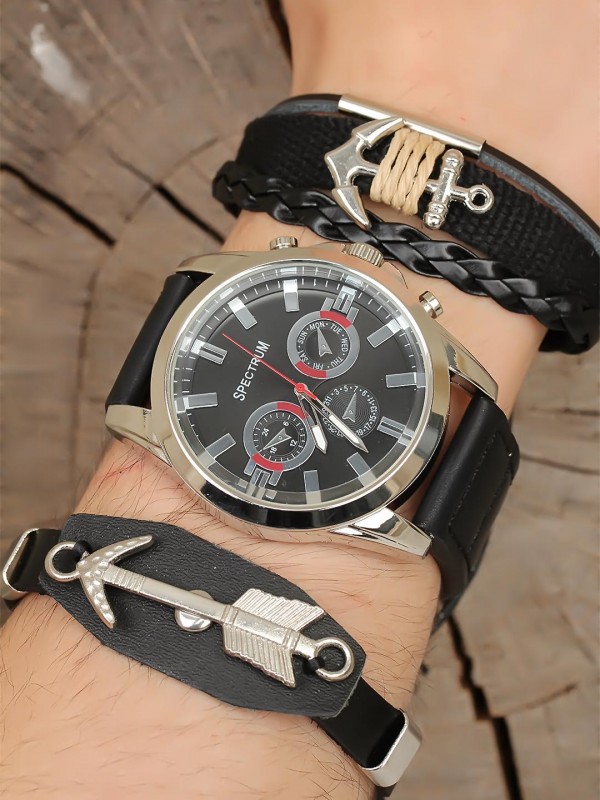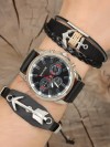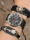 Deri bileklik tasarımlı siyah renk Deri Kordonlu Erkek Saat Kombini